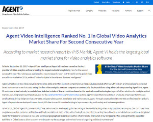 Categoría GOLD en AgentVi, Líder mundial de arquitectura abierta para soluciones de análisis de video según ranking IHS.
