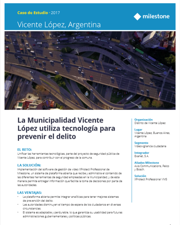 Los productos de Milestone integrados por Exanet como solucion de seguridad ciudadana.